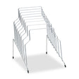 Fellowes step file open wire design keeps documents and files in clear view. Stepped sections for easy viewing and quick access to folders, letter and legal size papers. Wire design with rubber-tipped feet to protect your desktop. 100% recyclable. Perfect for your home or home office, school, or anywhere else you need to organize your important papers and documents. Number of Compartments: 8; For File Size: Letter to Legal; Load Orientation: Top/Side; Color(s): Silver.