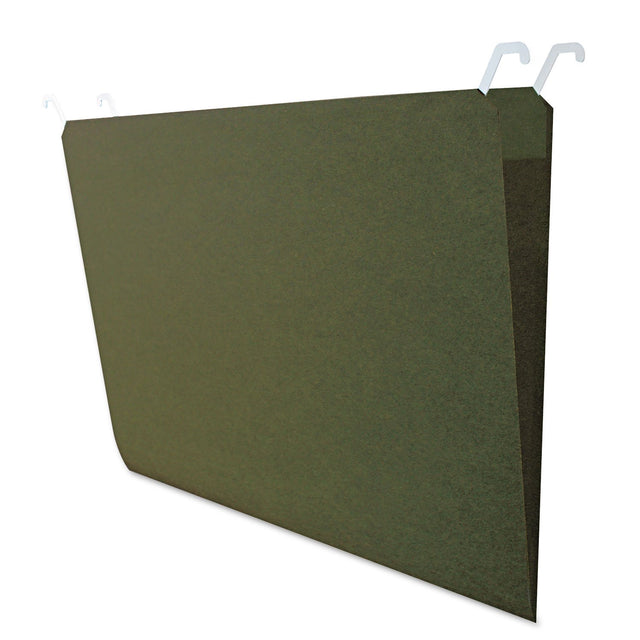 Find files fast with this revolutionary, patented design. Unique style lowers the top rail of the hanging folder so that the tabs of your interior files are completely visiblethere's no need for plastic tabs on the hanging file. Expands 1/2" to accommodate growing files. 9 pt. stock. Folder Size Type: Legal; Max Folder Expansion: 0.5"; Folder Color: Standard Green; Color Family: Green.
