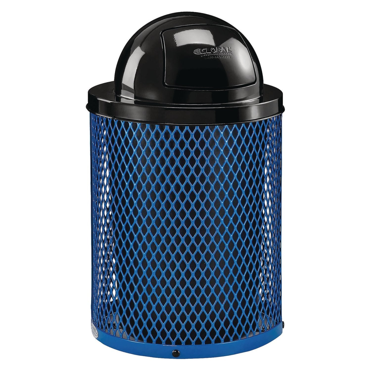Global Industrial Outdoor Diamond Steel Trash Can, 36 gal, Dome Lid, Blue (261948BL)