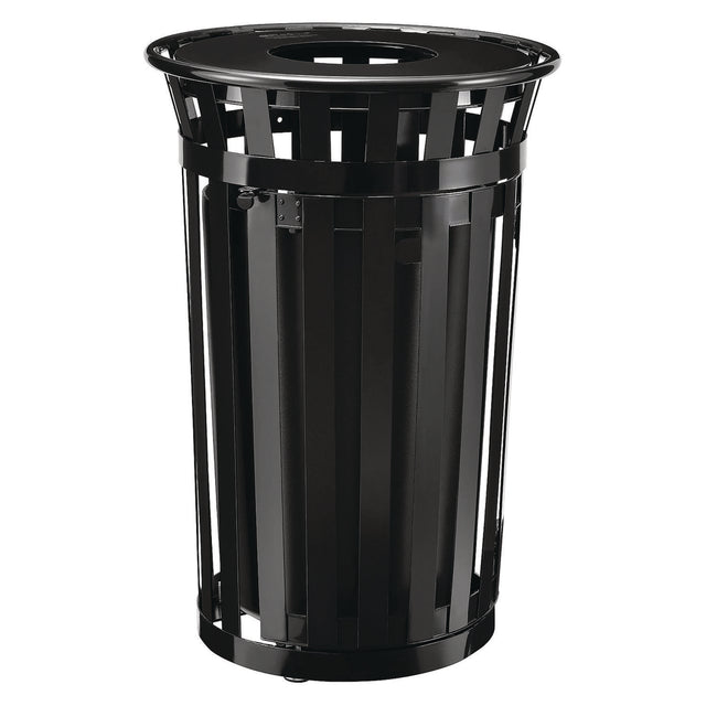 Global Industrial Outdoor Slatted Steel Trash Can, With Access Door, 36 gal, Steel Black (261940BK)