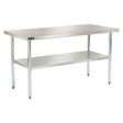 Our stainless steel work tables with an undershelf provide a practical and organized workspace solution. The heavy-duty, spacious work surface is crafted from stainless steel with a range of thicknesses and is supported by heavy-gauge channel supports and tubular legs. The convenient undershelf is designed to keep tools, equipment, and supplies organized and easily accessible to boost efficiency. Top Color: Silver; Color Family: Silver; Base Color: Silver; Top Shape: Rectangular.