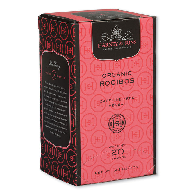 Harney & Sons Premium Tea, Organic Rooibos Herbal Tea, Individually Wrapped Tea Bags, 20/Box (HSF30081)