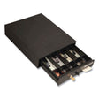 Meets your cash management needs. Includes a removable four slot bill tray and five slot coin tray. 0.15 cubic interior storage capacity. Features a one-touch button release to open the drawer with key lock for added security. Includes two keys. Cash/check drop slot for easy and convenient deposits. Scratch-resistant powder coat finish. Cash Drawer/Box/Tray Type: Drawer; Denomination: Coin; Cash; Money Tray Features: 4 Bill; 5 Coin Slots; Material(s): Steel.