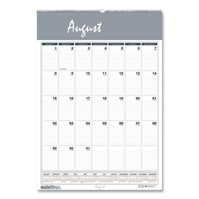 House of Doolittle Academic Year Bar Harbor Recycled Wirebound Monthly Wall Calendar, 15.5 x 22, White/Blue Sheets, 12-Month(Aug-July):2024-2025 (353)