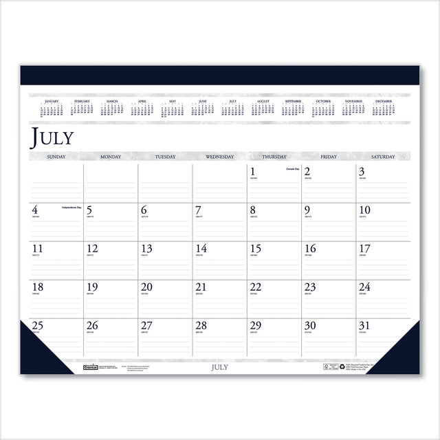 House of Doolittle Recycled Academic Desk Pad Calendar, 18.5 x 13, White/Blue Sheets, Blue Binding/Corners, 14-Month (July to Aug): 2024 to 2025 (1556)