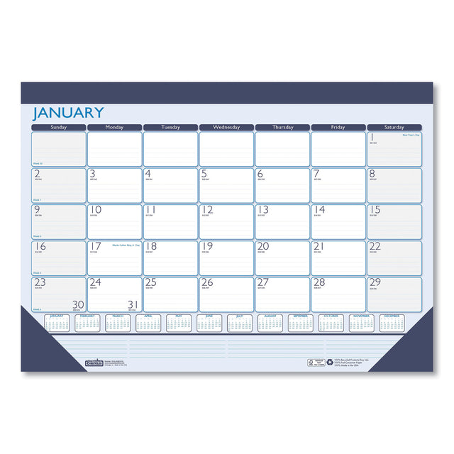 House of Doolittle Recycled Contempo Desk Pad Calendar, 18.5 x 13, White/Blue Sheets, Blue Binding, Blue Corners, 12-Month (Jan to Dec): 2025 (1516)
