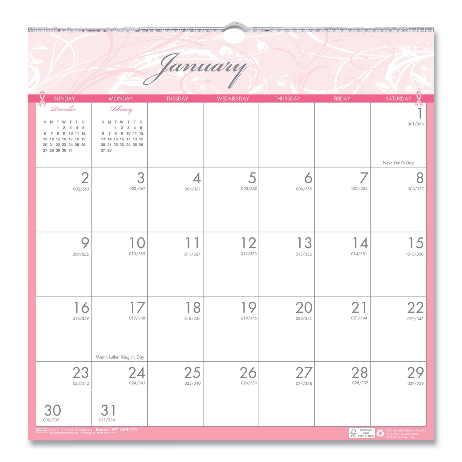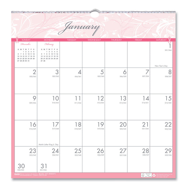 House of Doolittle Recycled Monthly Wall Calendar, Breast Cancer Awareness Artwork, 12 x 12, White/Pink/Gray Sheets, 12-Month (Jan-Dec): 2025 (3671) is backordered and will ship as soon as it is back in stock.