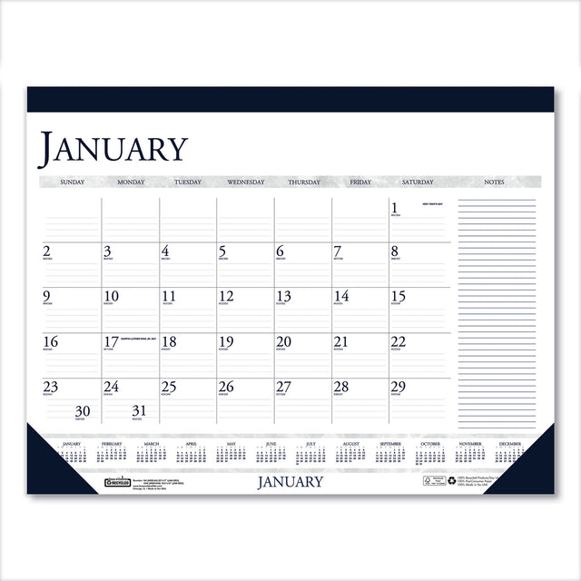House of Doolittle Recycled Two-Color Monthly Desk Pad Calendar with Notes Section, 18.5 x 13, Blue Binding/Corners, 12-Month (Jan-Dec): 2025 (1646)