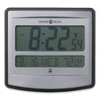 Injection-molded, radio-controlled digital wall clock has a two-tone finish of charcoal gray and metallic silver. The radio-controlled clock sets automatically and adjusts for Daylight Savings Time. Large 2.25" numerals display the time. Choice of 12- or 24-hour time format display. Displays the month, date, day of the week, and indoor temperature in Fahrenheit or Celsius. Folding stand for tabletop use. Quartz, battery-operated, radio-controlled clock with alarm requires two AA batteries (not included). Display Type(s): Digital; Movement Type: Quartz; Time Format: Military (24-Hour); Standard (12-Hour); Shape: Square.