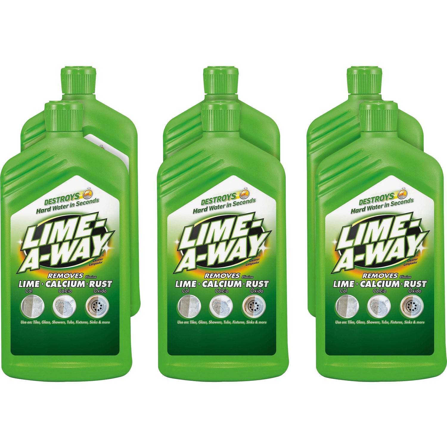Optimize cleaning time by destroying lime, calcium, and rust in 60 seconds with LIME-A-WAY Liquid when used as directed. This powerful formula can remove even the toughest limescale stains when applied directly. Give cleaning crews an effective tool for fighting hard water buildup so that surfaces can stay cleaner longer. LIME-A-WAY works on tile, glass, and glazed ceramic surfaces so you can remove hard water stains throughout bathrooms. Application: Descaler/Cleaner; Quantity: 6/Carton; Dirt Types: Calcium; Lime; Mineral Scale; Rust; Product Packaging: Flip-Top Bottle.