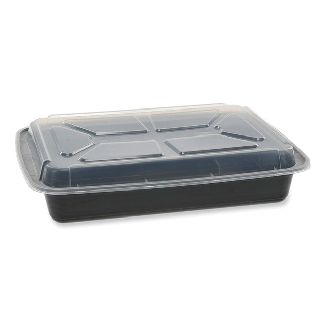 Pactiv Newspring VERSAtainer Microwavable Containers, Rectangular, 58 oz, 8.5 x 11.5 x 2.5, Black/Clear, Plastic, 150/Carton (NC989B)