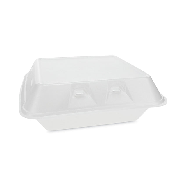 Pactiv SmartLock Vented Foam Hinged Lid Container, 3-Compartment, 9 x 9.25 x 3.25, White, 150/Carton (YHLWV9030000)