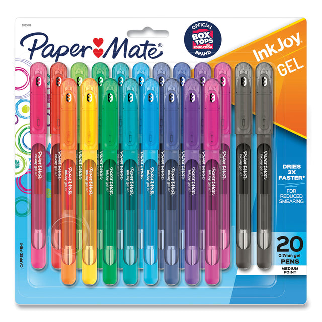 Paper Mate InkJoy Gel Pen, Stick, Medium 0.7 mm, Assorted Ink and Barrel Colors, 20/Pack (2023018)