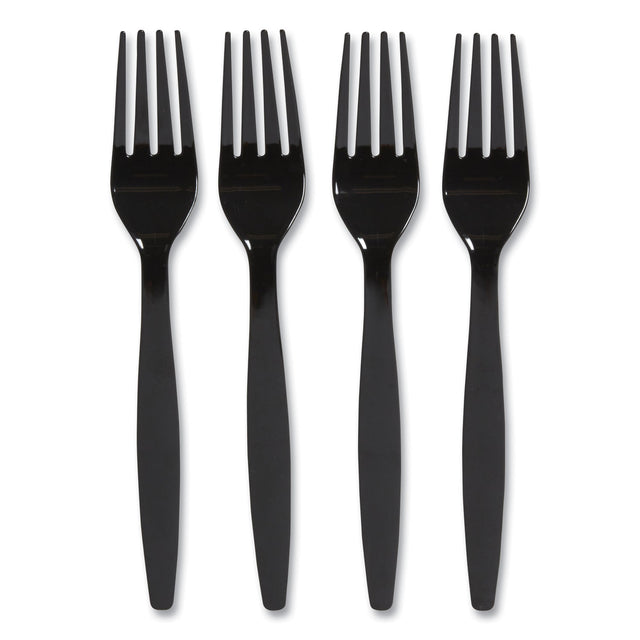 Perk Heavyweight Plastic Cutlery, Fork, Black, 100/Pack (24390990)