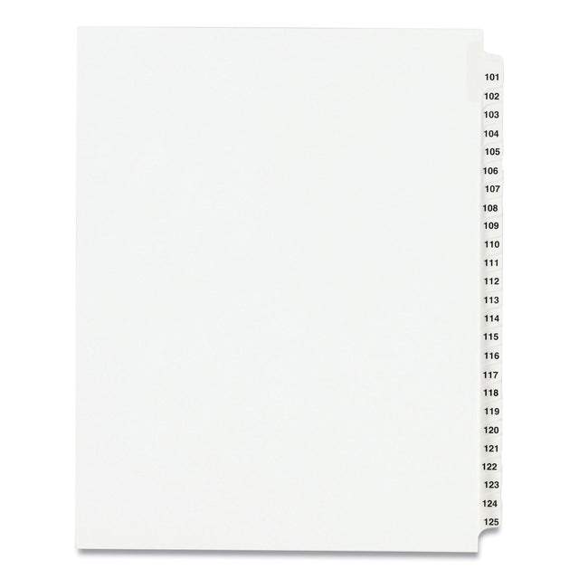 Preprinted Legal Exhibit Side Tab Index Dividers, Avery Style, 25-Tab, 101 to 125, 11 x 8.5, White, 1 Set, (1334) (01334)