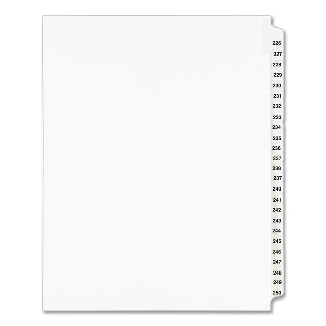 Preprinted Legal Exhibit Side Tab Index Dividers, Avery Style, 25-Tab, 226 to 250, 11 x 8.5, White, 1 Set, (1339) (01339)
