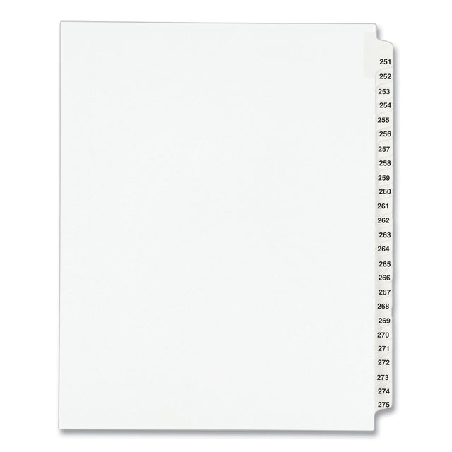 Preprinted Legal Exhibit Side Tab Index Dividers, Avery Style, 25-Tab, 251 to 275, 11 x 8.5, White, 1 Set, (1340) (01340)