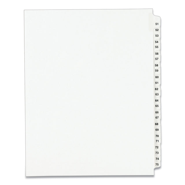 Preprinted Legal Exhibit Side Tab Index Dividers, Avery Style, 25-Tab, 51 to 75, 11 x 8.5, White, 1 Set, (1332) (01332)