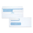 Quality Park Double Window Envelopes display both sender and receiver addresses for mailing statements and invoices. Features a special Redi-Seal self sealing closure. Simply lift the bottom flap and press to the top flap for an instant, secure seal. A reflex blue pattern protects sensitive client information because it obscures the details of the contents, even when held up to light. Heat-Resistant Adhesive. Seam Type: Diagonal; Flap Type: Commercial; Trade Size: #8 5/8; Security Tinted: Yes.