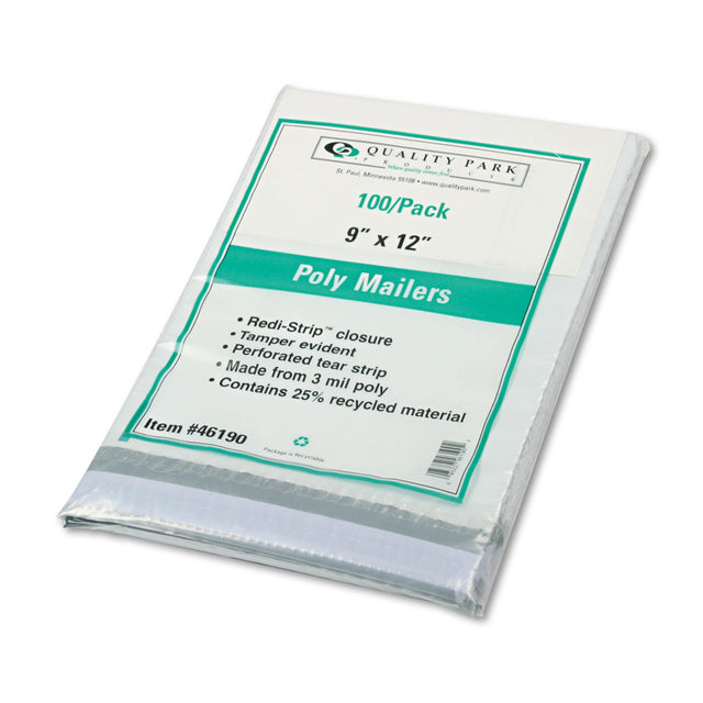 Quality Park Redi-Strip Poly Mailer, #3, Square Flap with Perforated Strip, Redi-Strip Adhesive Closure, 9 x 12, White, 100/Pack (46190)