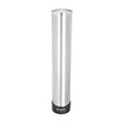Convenient wall mount style with removable cap. Top load compartment. Use with cone or flat bottom, plastic or foam. Material(s): Stainless Steel; Cup Capacity [Max]: 12 oz to 24 oz; Height: 23.5"; Diameter: 3.88".