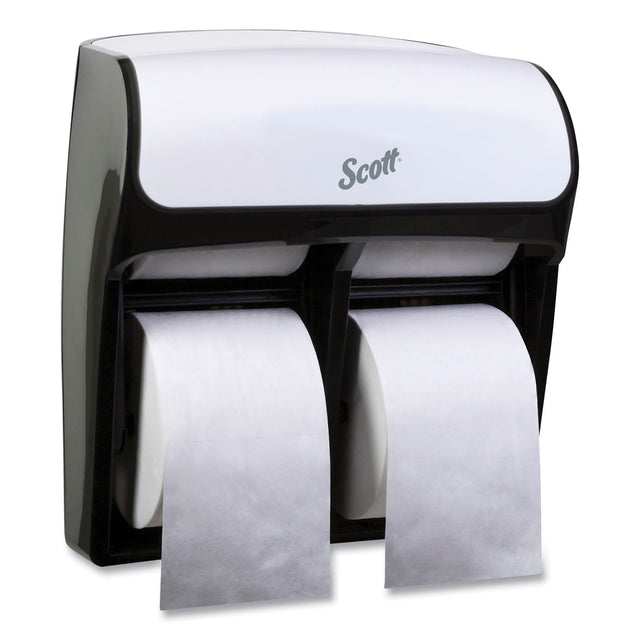 Double your dispensing capacity. Looking for a standard roll bathroom tissue dispenser that offers higher capacity than most systems? This standard roll bathroom tissue dispenser is more compact than the leading high capacity SRB system. It offers double the capacity of competing systems. For Roll Size: 4 x 3.94; Roll Type: Conventional; Capacity (text): Holds Four Rolls of Scott or Cottonelle Coreless and Scott Small Core; Color(s): White.