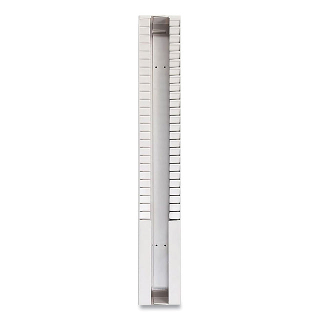 Put this time card rack near entryways to provide reminders for employees to track their time. The mountable design and lightweight construction make it easy to secure to a wall, door, or other surface, while the 25 pockets offer plenty of space. This Pyramid time card rack is adjustable, so you can customize it to fit the needs of your business. Adjusts to hold cards between 2.5" to 5" in width and 2.25" to 10" in height. Mounting hardware included. Made of lightweight durable plastic. Color(s): Light Gray; Overall Width: 5"; Overall Depth: 2.38"; Overall Height: 31.5".