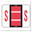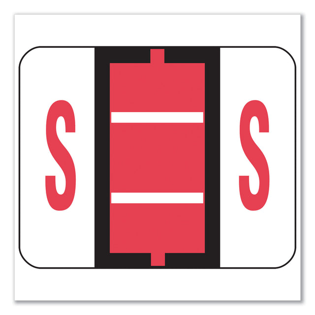 Keep files organized at a glance with these alphabetic labels that feature a wraparound solid color bar and a colored character printed on a white background. Colors are compatible with end tab systems using the bar-style format. Convenient dispensing box for easy peel off and application. Includes 500 labels per roll. Compatible with Tab Products 1283 series alphabetical labels. Shape: Rectangular; Label Size - text: 1 x 1.25; Label Color(s): White; Color Family: White.