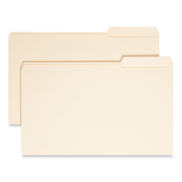 Reinforced tabs provide extra strength where you need it most. More durable than single-ply standard file folders. Built stronger to last longer. Scored for 0.75" expansion. Made of manila stock for everyday use. File Folder Size Type: Legal; File Folder Color: Manila; Color Family: Manila; File Folder Material: 11-pt Manila.