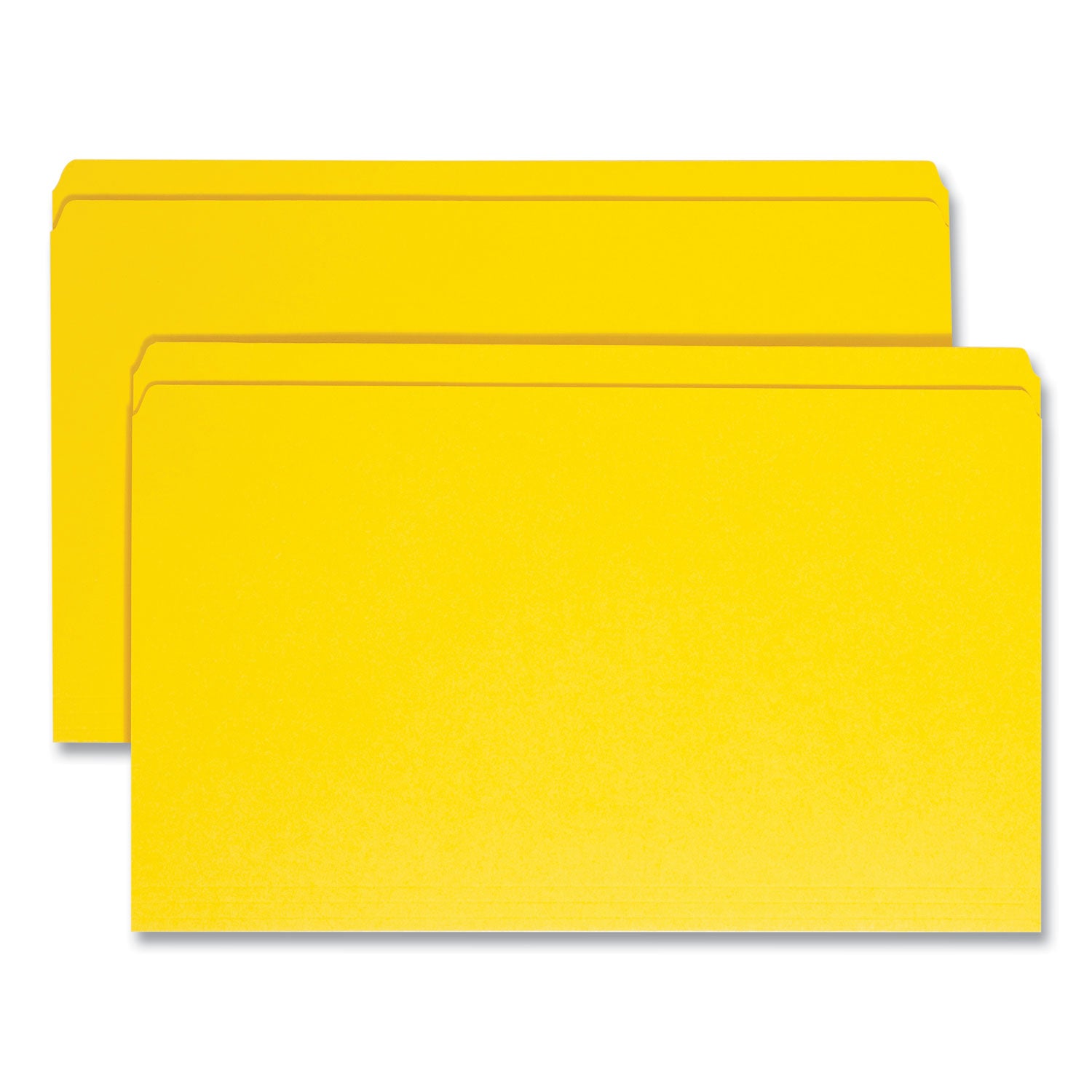 Use a rainbow of colors to categorize different types of folders, which speeds filing and retrieval time, or to complement your company colors or decor. Multiple tab positions to fit any vertical or lateral filing system. Reinforced tab adds strength where you need it most. Made of 11 point colored stock for everyday use. File Folder Size Type: Legal; File Folder Color: Yellow; Color Family: Yellow; File Folder Material: 11-pt Stock.