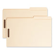 Keep papers secure and in order, even when folders are handled by lots of people and transported out of the office. Items with reinforced tab have added strength at point of greatest wear. Fasteners keep papers secure and in order. Expands 0.75" for greater storage capacity. Choose one or two fasteners to subdivide and keep papers secure. 2" prong K-style fasteners. Guide-Height 2/5-Cut Tabs11-pt manila. Folder Size: Legal; Total Number of Dividers: 0; Total Number of Fasteners: 2; Max Folder Expansion: 0.75".