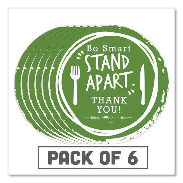 Tabbies BeSafe Messaging Floor Decals, Be Smart Stand Apart; Knife/Fork; Thank You, 12" Dia., Green/White, 6/Carton (79061)