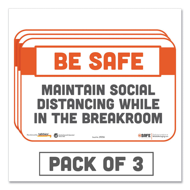 Tabbies BeSafe Messaging Repositionable Wall/Door Signs, 9 x 6, Maintain Social Distancing While In The Breakroom, White, 3/Pack (29056)