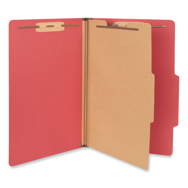 Universal Bright Colored Pressboard Classification Folders, 2" Expansion, 1 Divider, 4 Fasteners, Legal Size, Ruby Red Exterior, 10/Box (UNV10213)