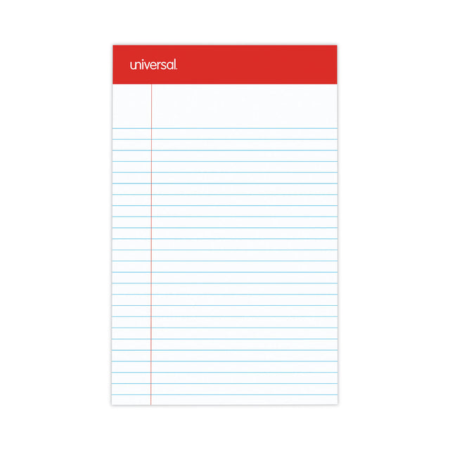 Universal Perforated Ruled Writing Pads, Narrow Rule, Red Headband, 50 White 5 x 8 Sheets, Dozen (UNV46300)