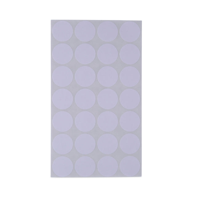 Quickly and easily identify important information or color-code documents, calendars, and schedules with self-sticking, removable, round labels. The easy-to-spot labels stick to nearly any surface and can be written on if needed to further clarify. For use with craft projects, games, schoolwork, chore charts, employee schedules, folders, bake sales, and more. Not for use in printers or copiers. 4 x 6 sheets. Shape: Round; Label Size - text: 0.75" dia; Label Color(s): White; Color Family: White.