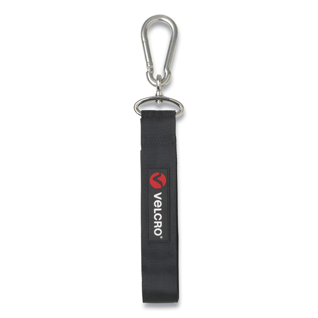Keeps power cords, hoses and other trip hazards off the floor.Heavy-duty storage strap designed to wrap securely around larger items or bundle cords and hoses in order hang for storage and maximum organization.Suitable for indoor and outdoor use this reusable, adjustable strap with Zinc hook is weather resistant. Made from tough, durable and strong VELCRO Brand gripping hook and loop nylon material combined with the highest quality grade carabineer hook. Space saving. Large. Hook and Loop Fastener Type: Strap; Suggested Use: Indoor/Outdoor Heavy-Duty; Color(s): Black/Silver; Weight Capacity (text): Up to 300 lbs.