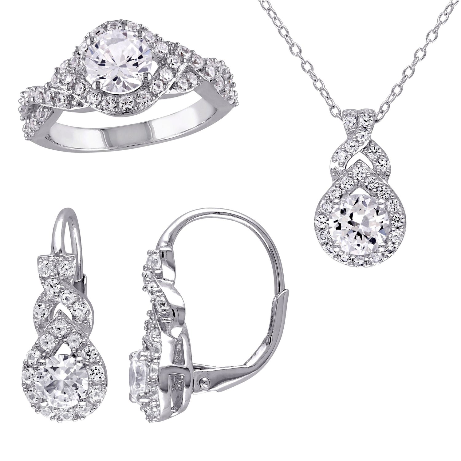 White Sapphire Halo Necklace, Earrings & Ring 3-Pc. Set in Sterling Silver | Classic Halo Jewelry Trio
