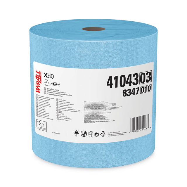 WypAll Power Clean X80 Heavy Duty Cloths, Jumbo Roll, 12.4 x 12.2, Blue, 475/Roll (41043)